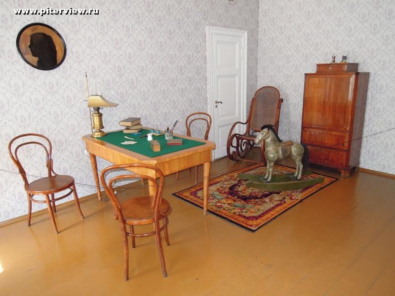 и заходим в детскую. Здесь находится стол с письменными принадлежностями, и детские игрушки. В этой комнате жили и играли дети Достоевских.